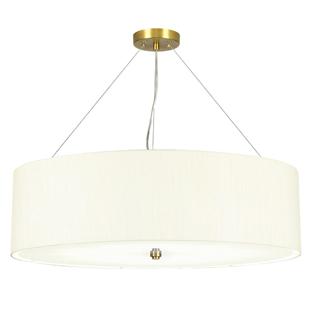 The Pearce pendant range with suspension wires is available in stock with a faux silk Ivory shade. Choose from 6 different size options with either a Polished Chrome or Aged Brass Ceiling pan and finial. A gloss white acrylic bottom diffuser is included. See our shade catalogue for more shade colours and customised option.
