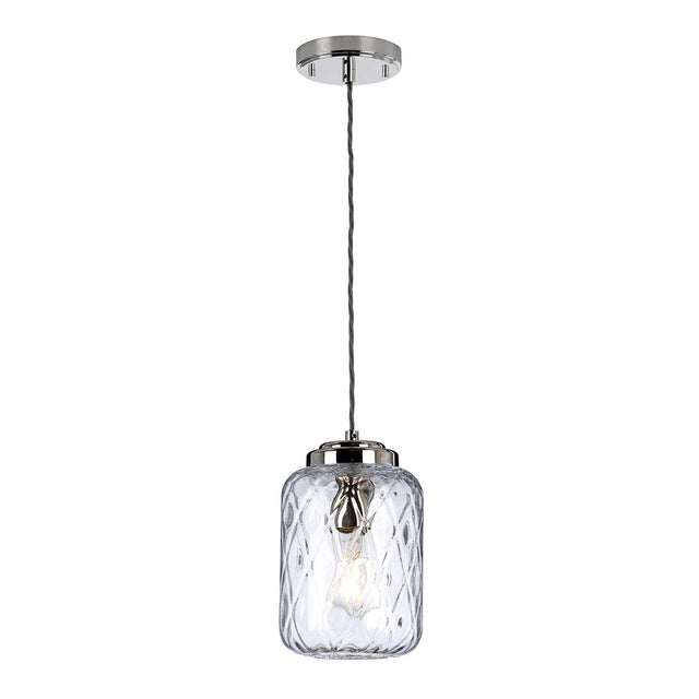 The elegant diamond patterned mouth-blown glass adds refined detail to this contemporary pendant. With striking polished nickel metalwork this monochrome pendant will suit most rooms and interior styles.