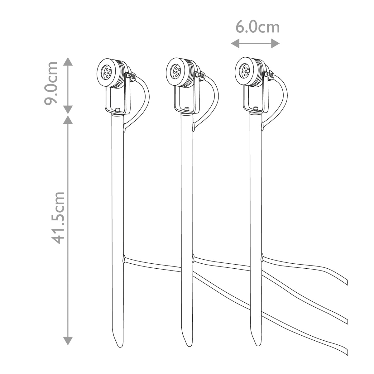 Garden Zone Spot Lights from the Spennymoor range. Spennymoor Starter kit including 3 x 12V Spotlights, 3 x Poles, 6m cable & 12V Transformer Product Code = GZCC-SPENNYMOOR-3P is backordered and will ship as soon as it is back in stock.