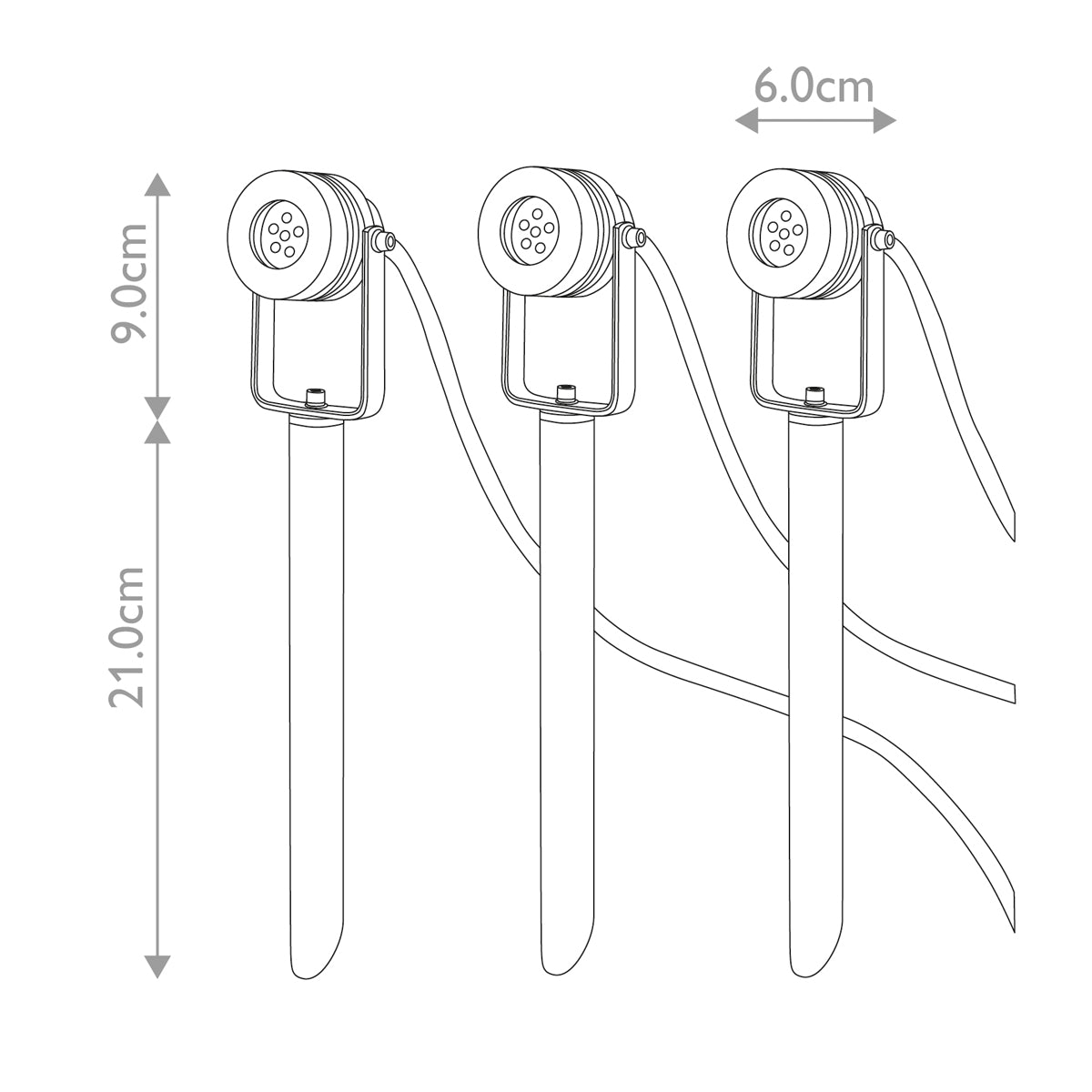 Garden Zone Spot Lights from the Spennymoor range. Spennymoor Starter kit including 3 x 12V Spotlights, 3 x Spikes, 6m cable & 12V Transformer Product Code = GZCC-SPENNYMOOR-3S