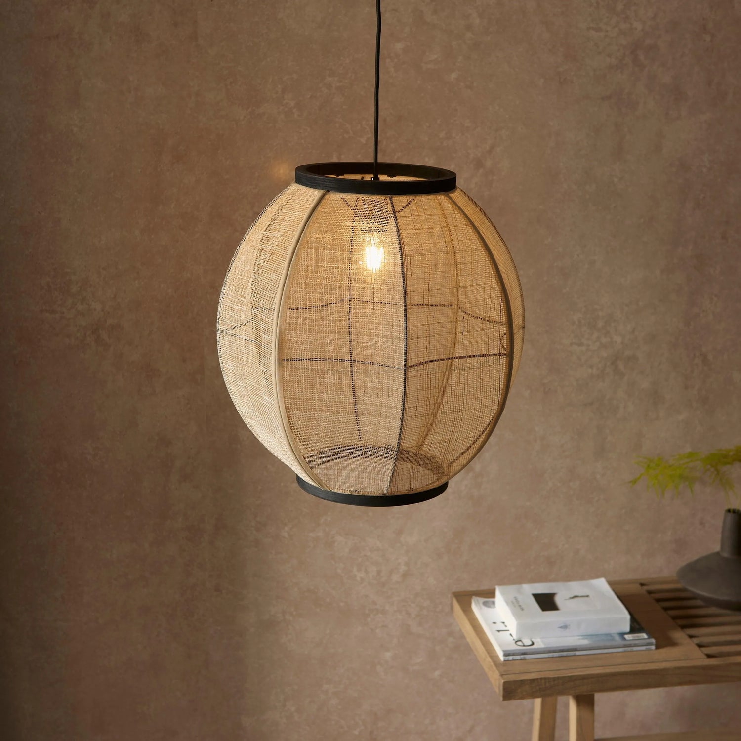 Take your interiors back to nature with this handmade wood and natural linen collection; a large pendant perfect for bringing an organic texture and warming ambience into your home. Other family items available.