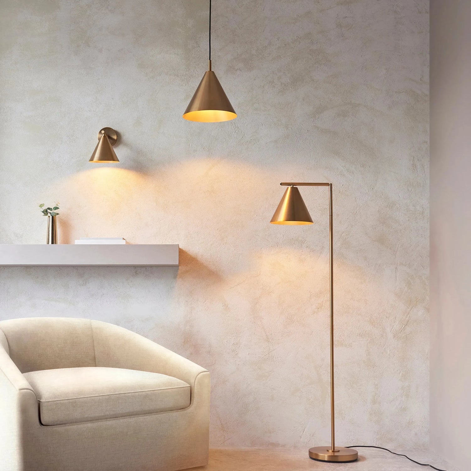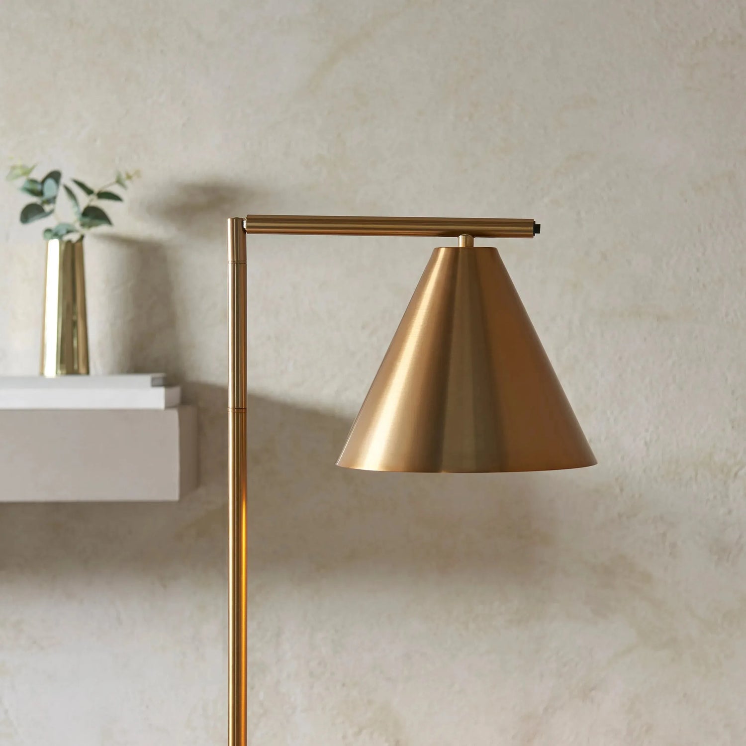 A simple and effective design, this warm antique brass task floor light is ideal for a living room reading light, or a way to brighten up an office. The adjustable arm and head allows you to direct the light exactly where you need it; alongside an easy to reach on/off push switch. The 2 metre black fabric cable gives the flexibility to move this light around a room. Perfect for use with E27 LED lamps.