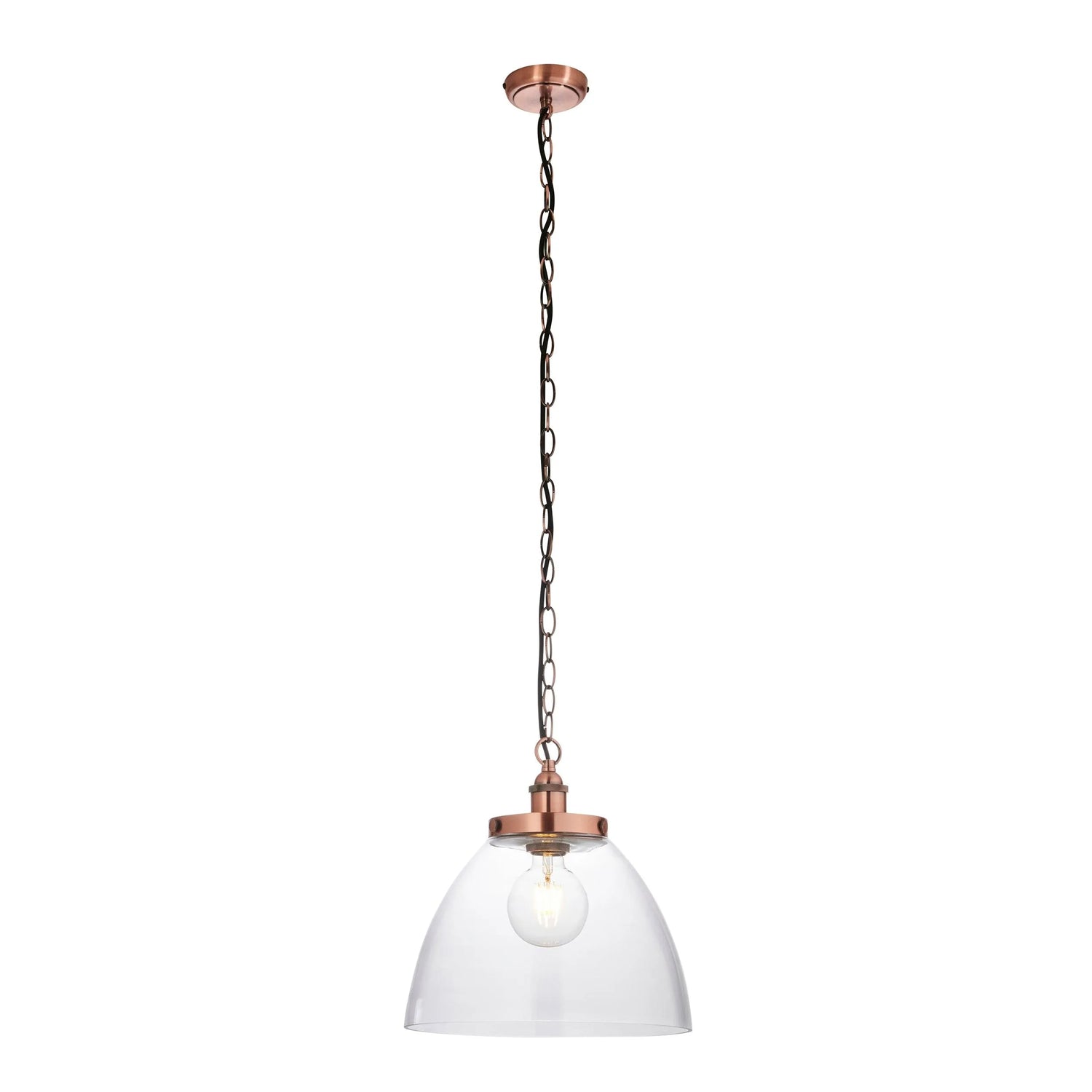 Endon Lighting 106895 Hansen Grand Indoor Pendant Light Aged copper plate & clear glass Dimmable