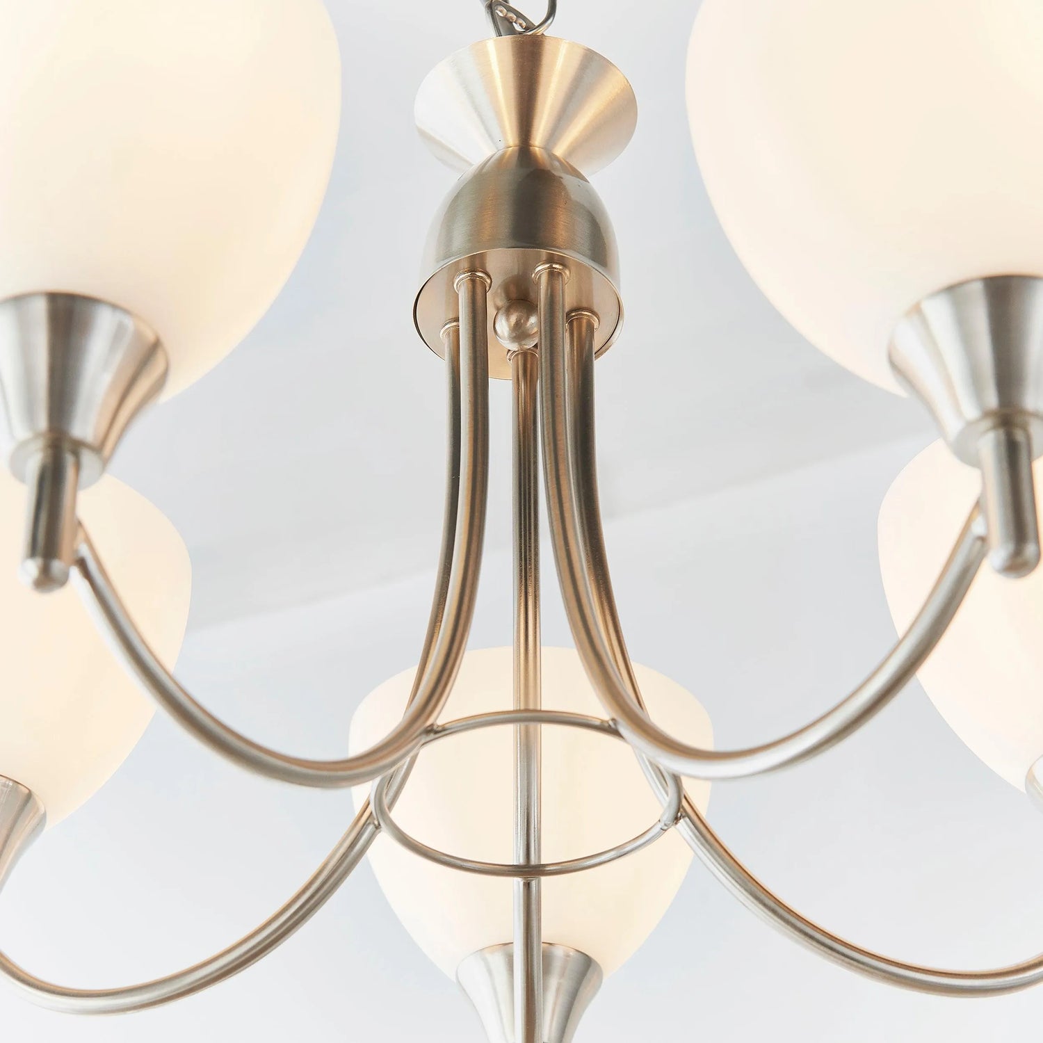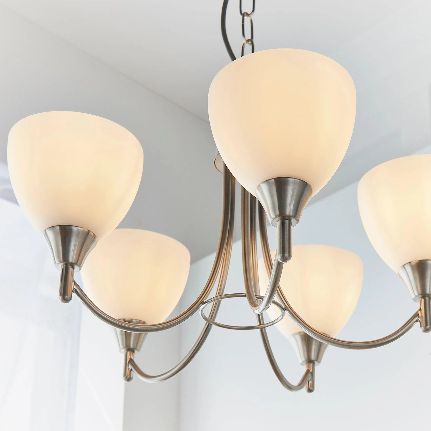Endon Lighting 1805-5SC Alton Indoor Pendant Light Satin chrome plate & opal glass Dimmable
