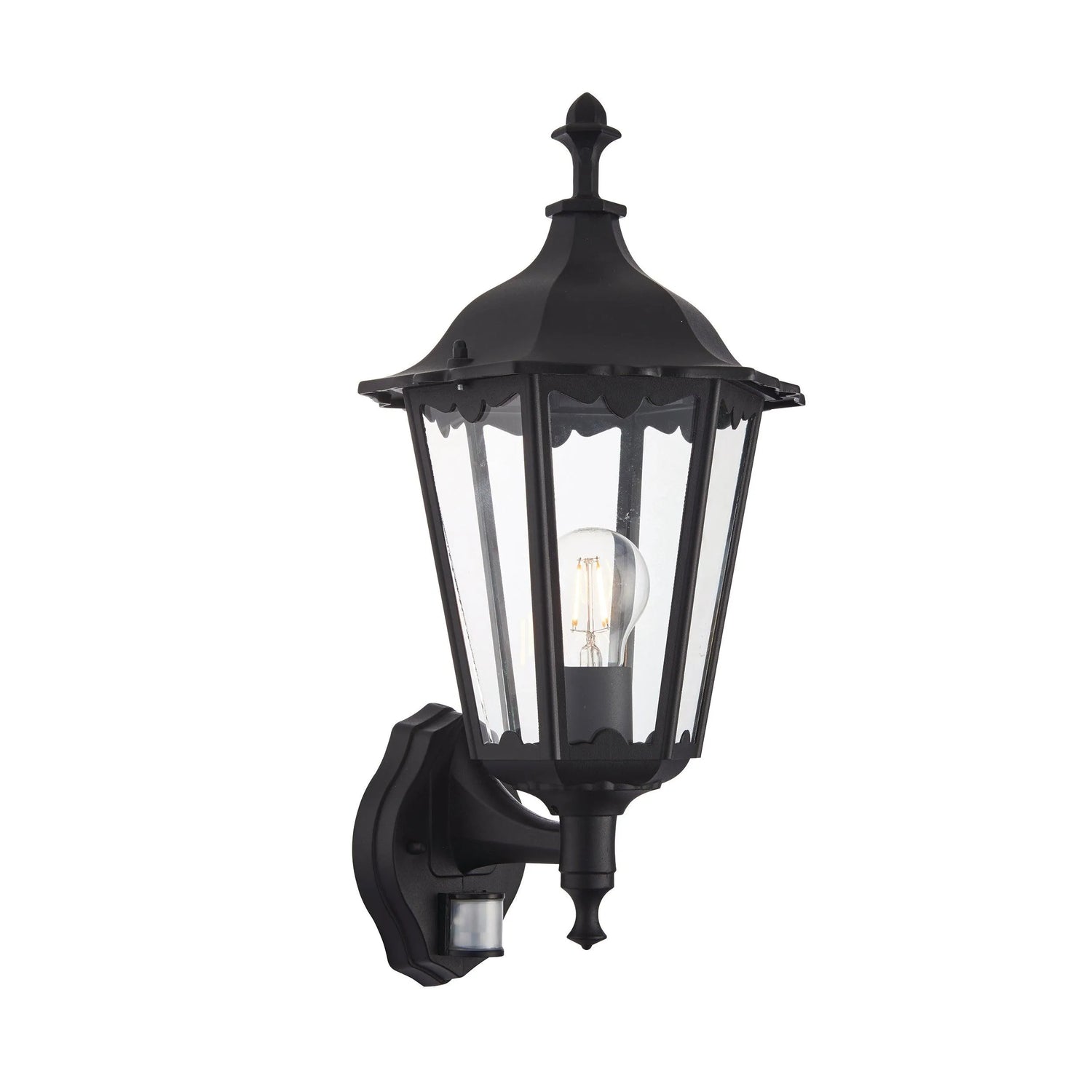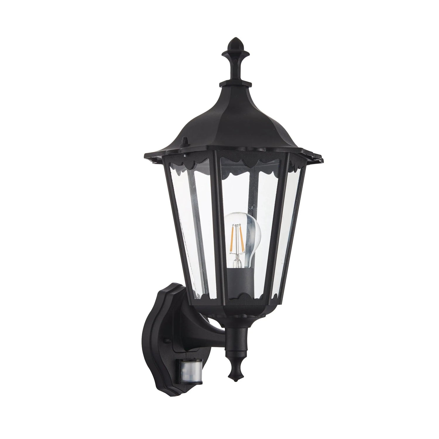 A timeless traditional exterior wall lantern, matt black painted die cast aluminium with clear glass panels and decorative details. Featuring a PIR sensor with adjustable detection angle, timer function. Combine with a filament LED lamp to create an authentic look of the past.