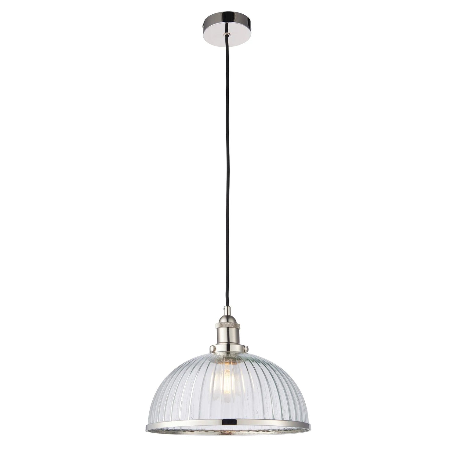 Endon Lighting 76713 Hansen Indoor Pendant Light Bright nickel plate & clear ribbed glass Dimmable