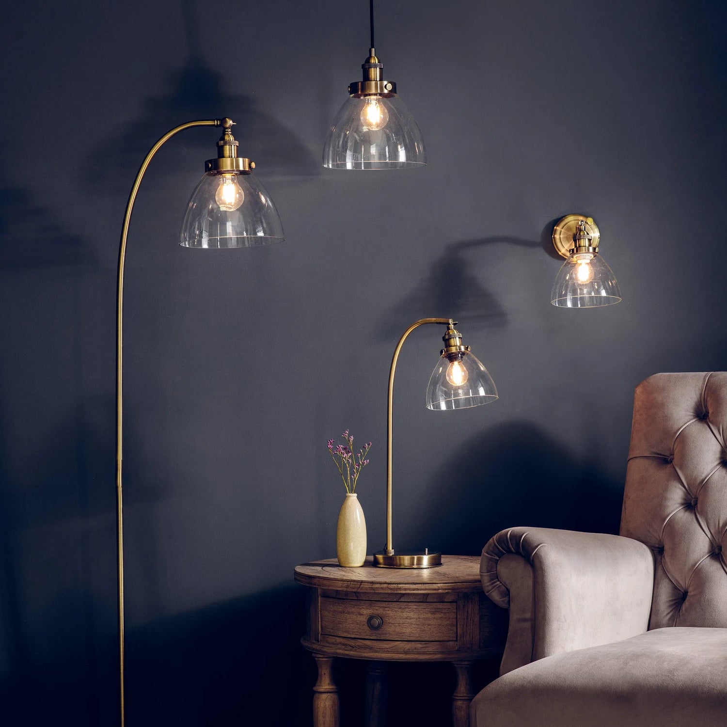 Endon Lighting 77272 Hansen Indoor Pendant Light Antique brass plate & clear glass Dimmable