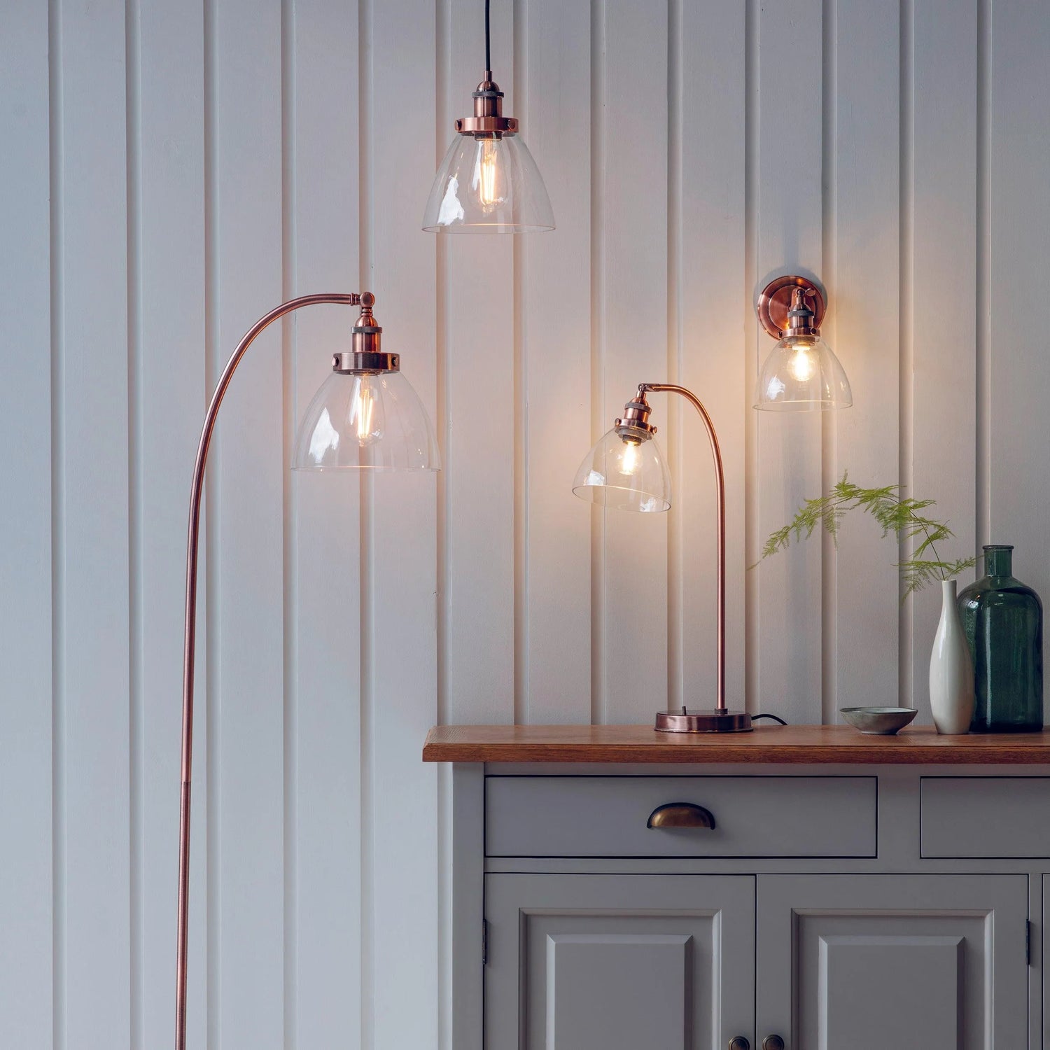 Endon Lighting 77861 Hansen Indoor Table Lamps Aged copper plate & clear glass Non-dimmable