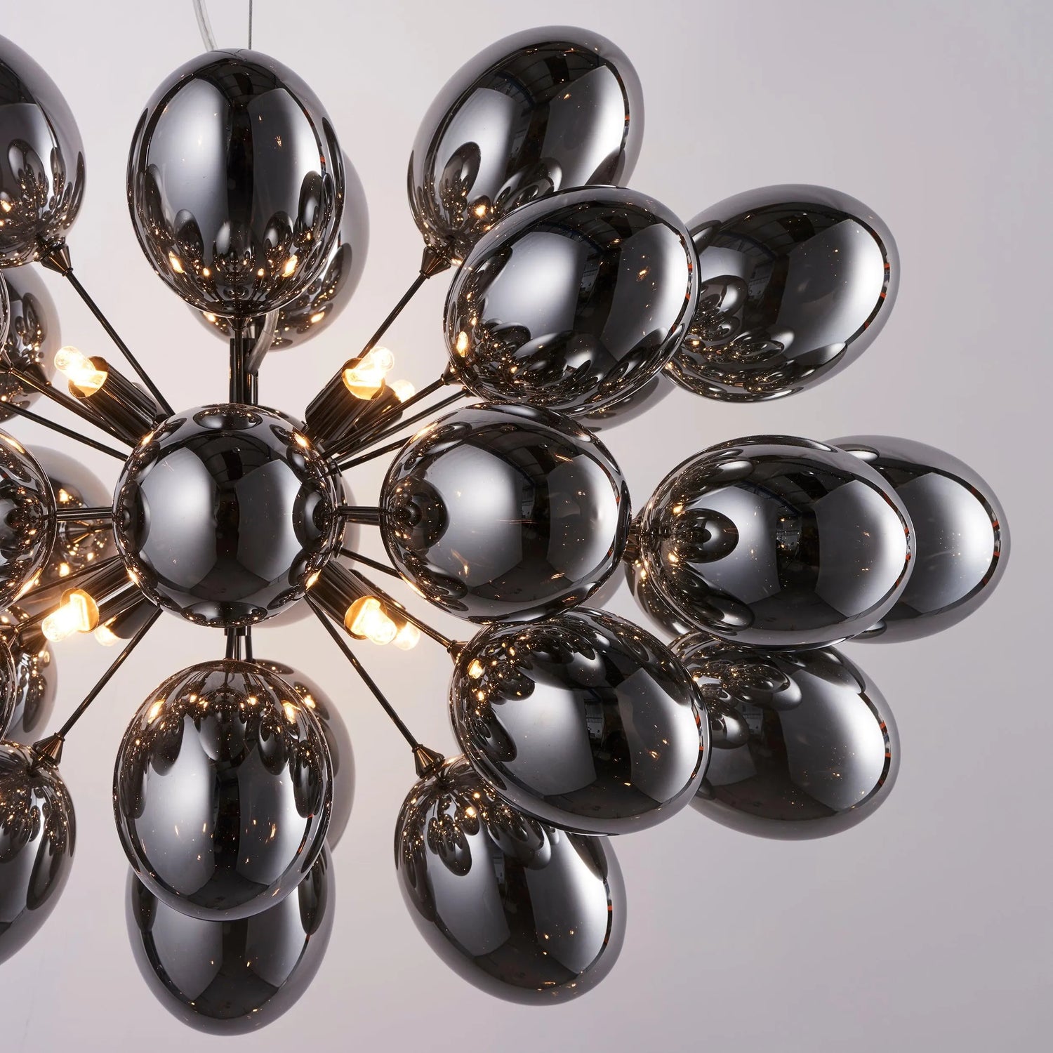 Equally as stunning as the chrome Infinity, is the dramatic black chrome Infinity pendant. Electro-plated dark chrome glass shades and black chrome plated finish combine to achieve a complete sophisticated designer look.
