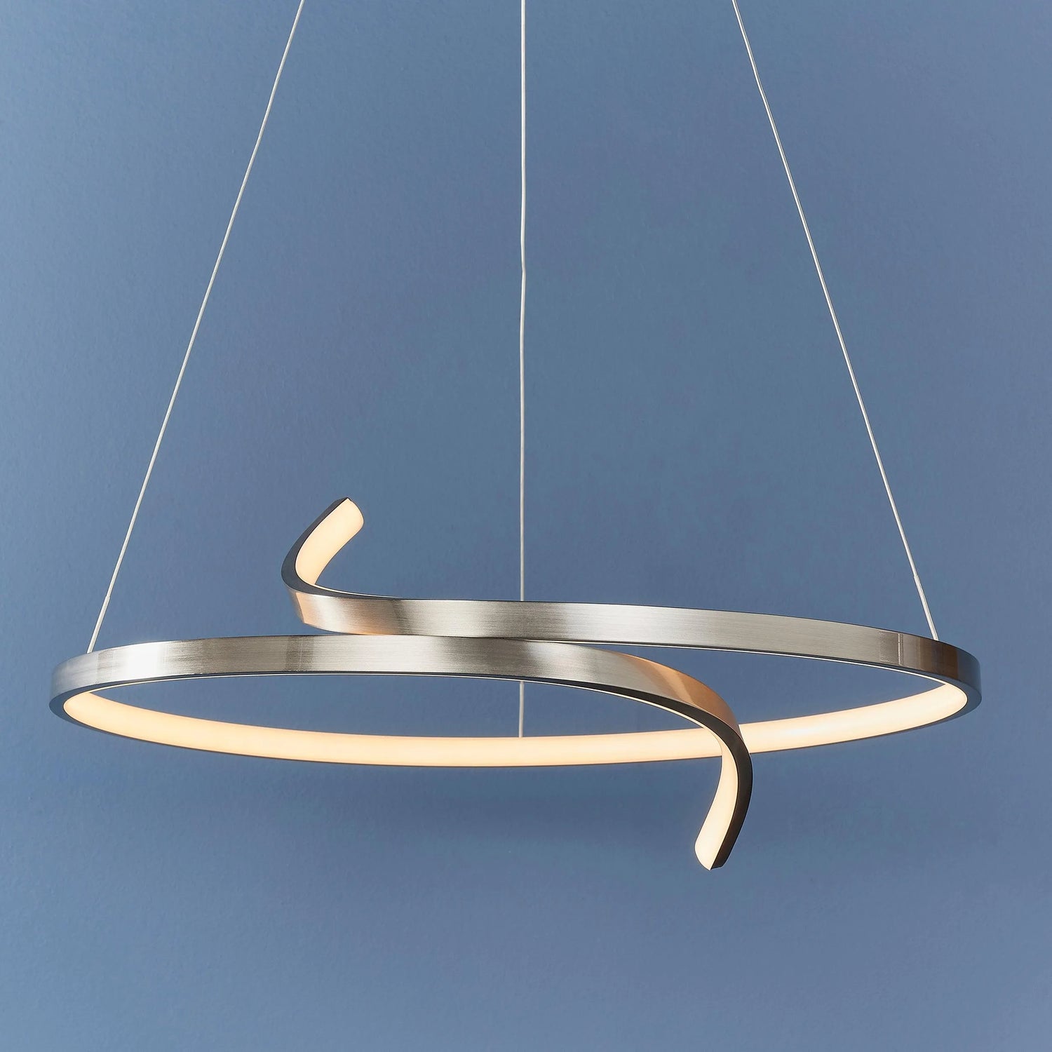 The Rafe is an elegant and slim line suspended pendant with a sophisticated designer look. Includes integrated LED and features a satin nickel plate finish.