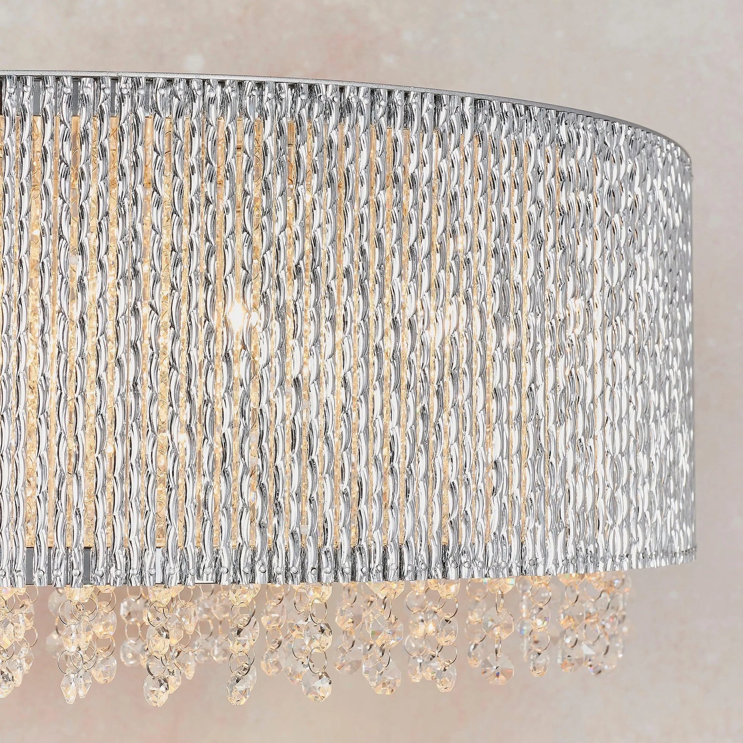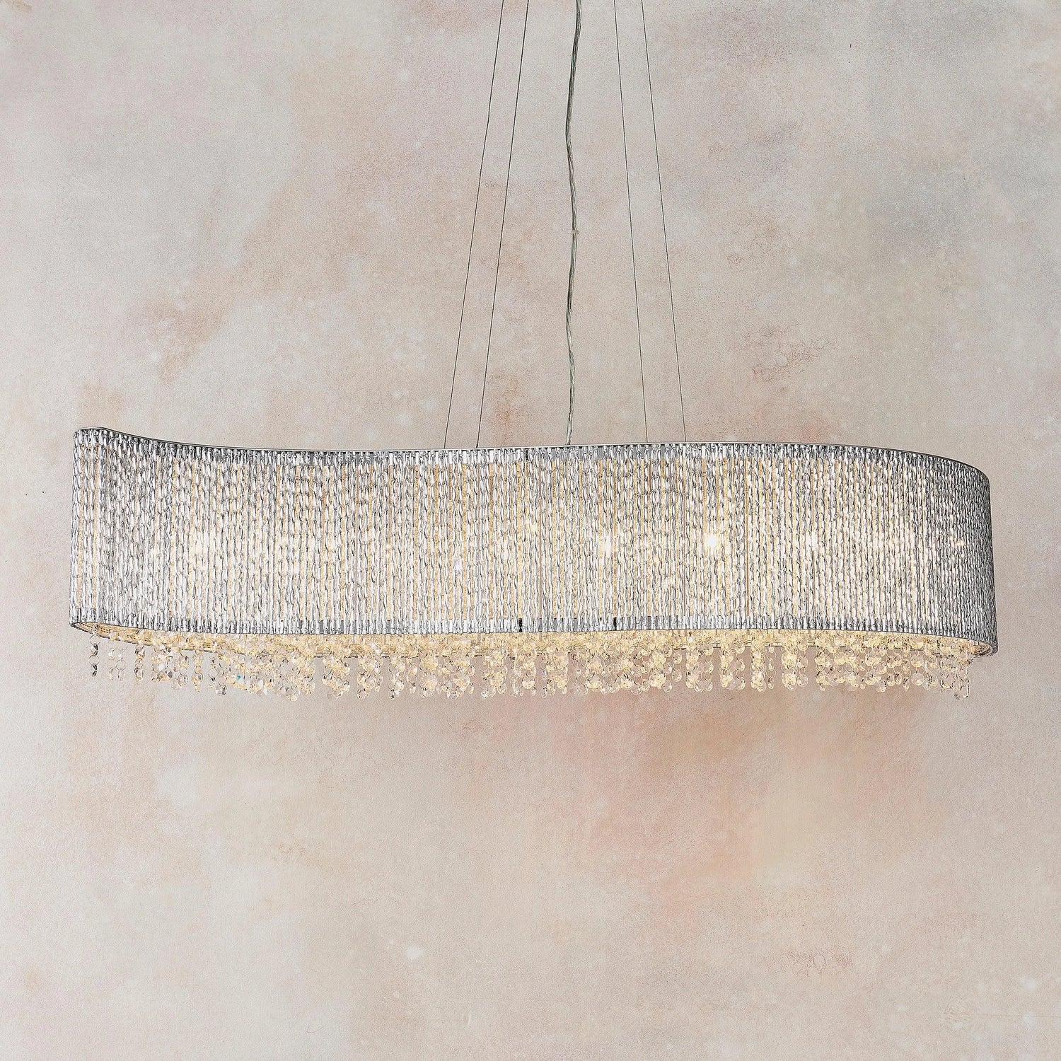 The perfect opulent linear pendant, create striking light patterns with thousands of high quality crystals housed within decorative twisted polished chrome rods formed into a unique sweeping wave shape, the perfect centrepiece for the most loved rooms of your home.