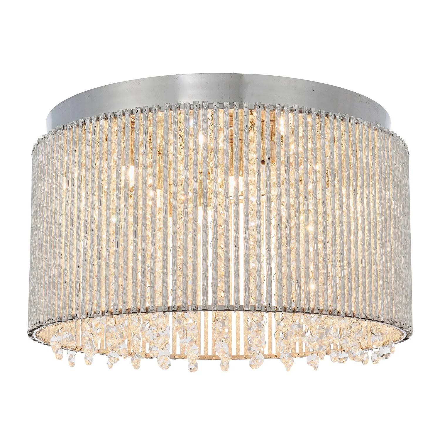The perfect opulent ceiling flush, create striking light patterns with an intricate mix of high quality crystals housed within decorative twisted polished chrome rods, the perfect centrepiece for the most loved rooms of your home.
