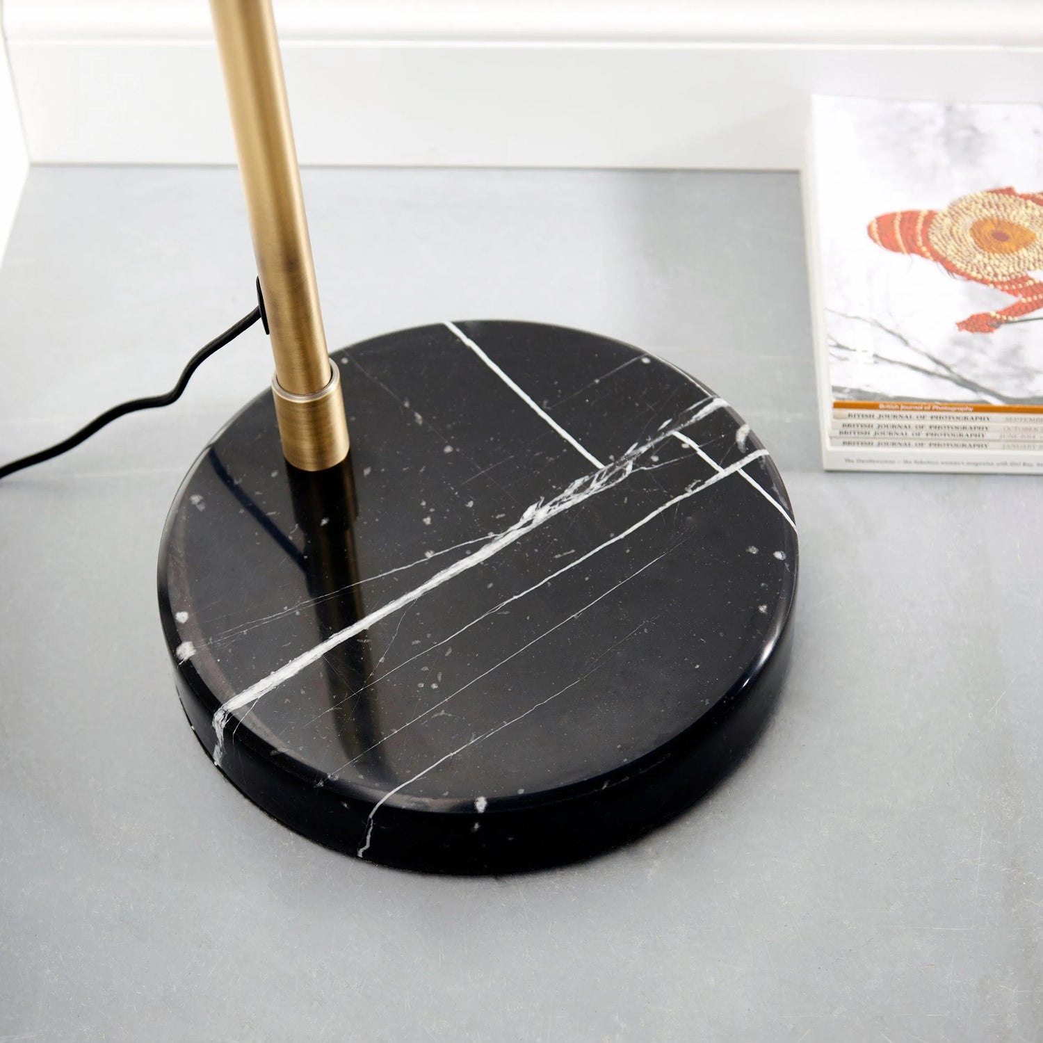 Create an 'on-trend' look with the Otto floor lamp. The combination of gloss white glass, antique brass plated metalwork and the black marble base completes the smart Scandinavian look. Create the perfect illumination when paired with filament LED lamps.