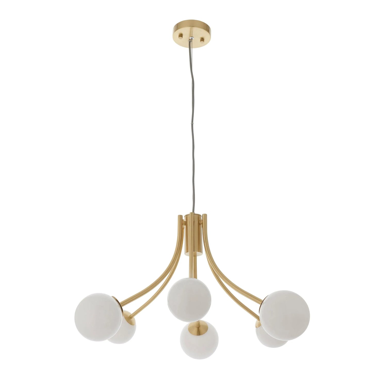 Endon Lighting 92217 Bloom Indoor Pendant Light Satin brass plate & opal glass Dimmable