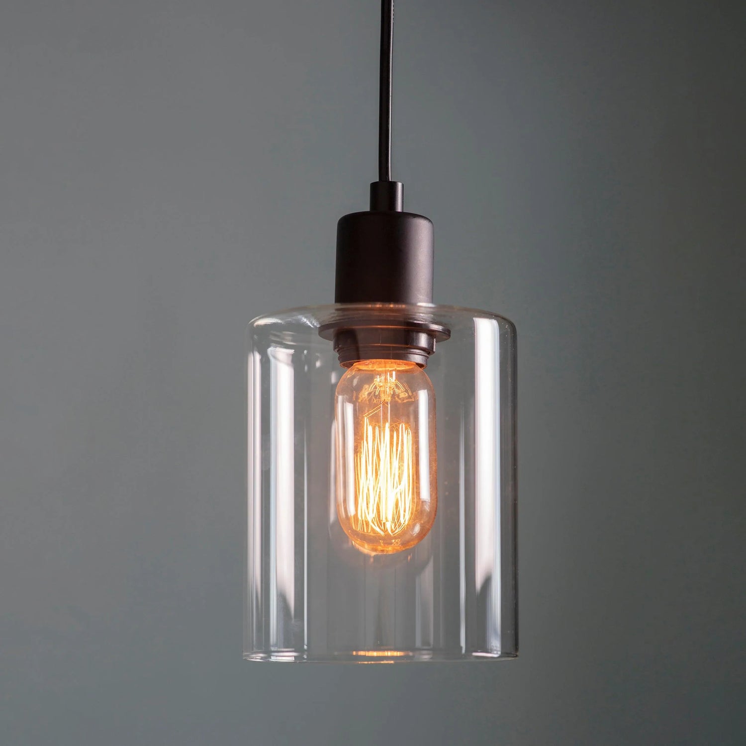 A modern pendant for contemporary interiors. Matt black painted finish with clear glass shade. Versatile height adjustable with 1 metre black flex, twin with E27 LED filament look for a unique, curated look.