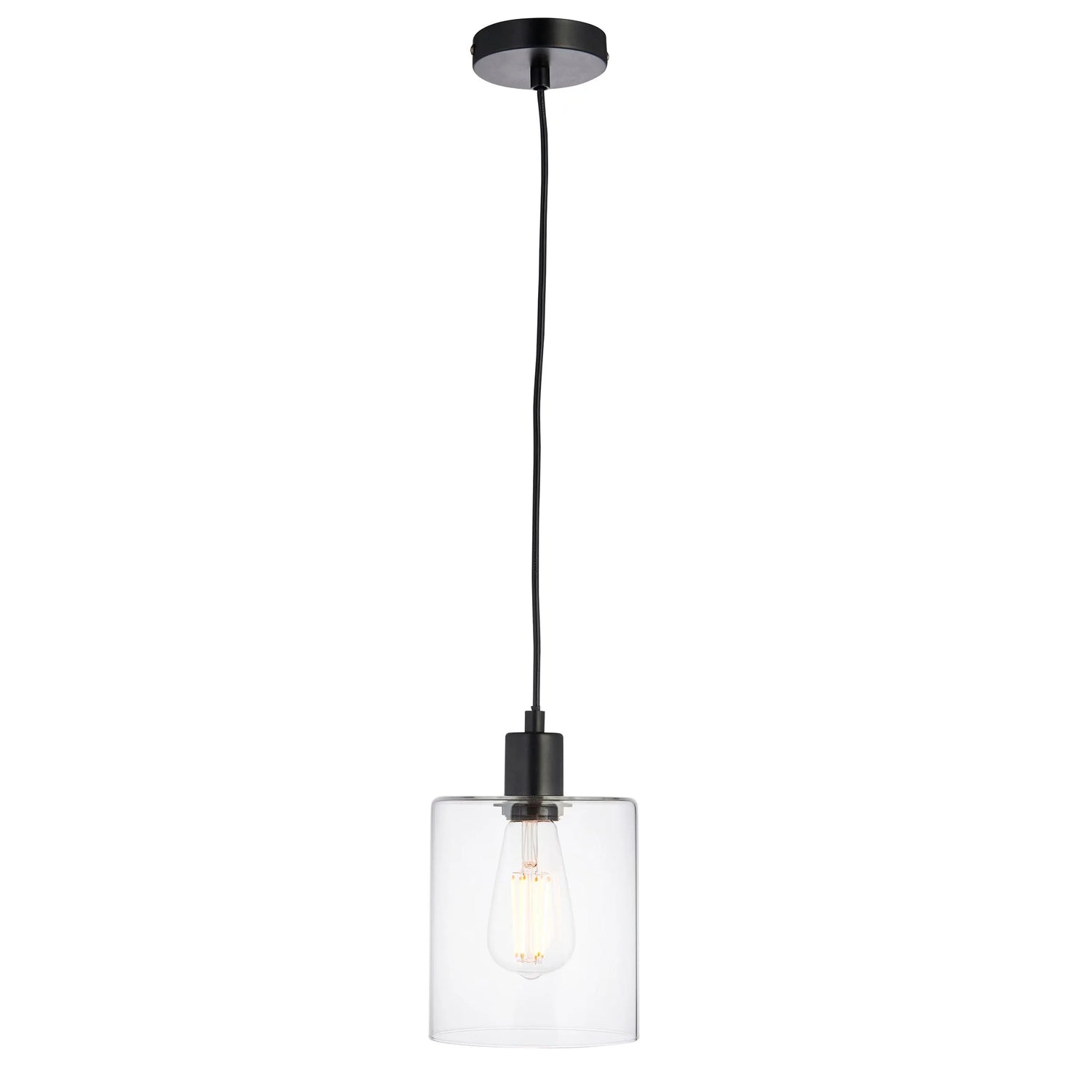 Endon Lighting 95472 Toledo Indoor Pendant Light Matt black & clear glass Dimmable