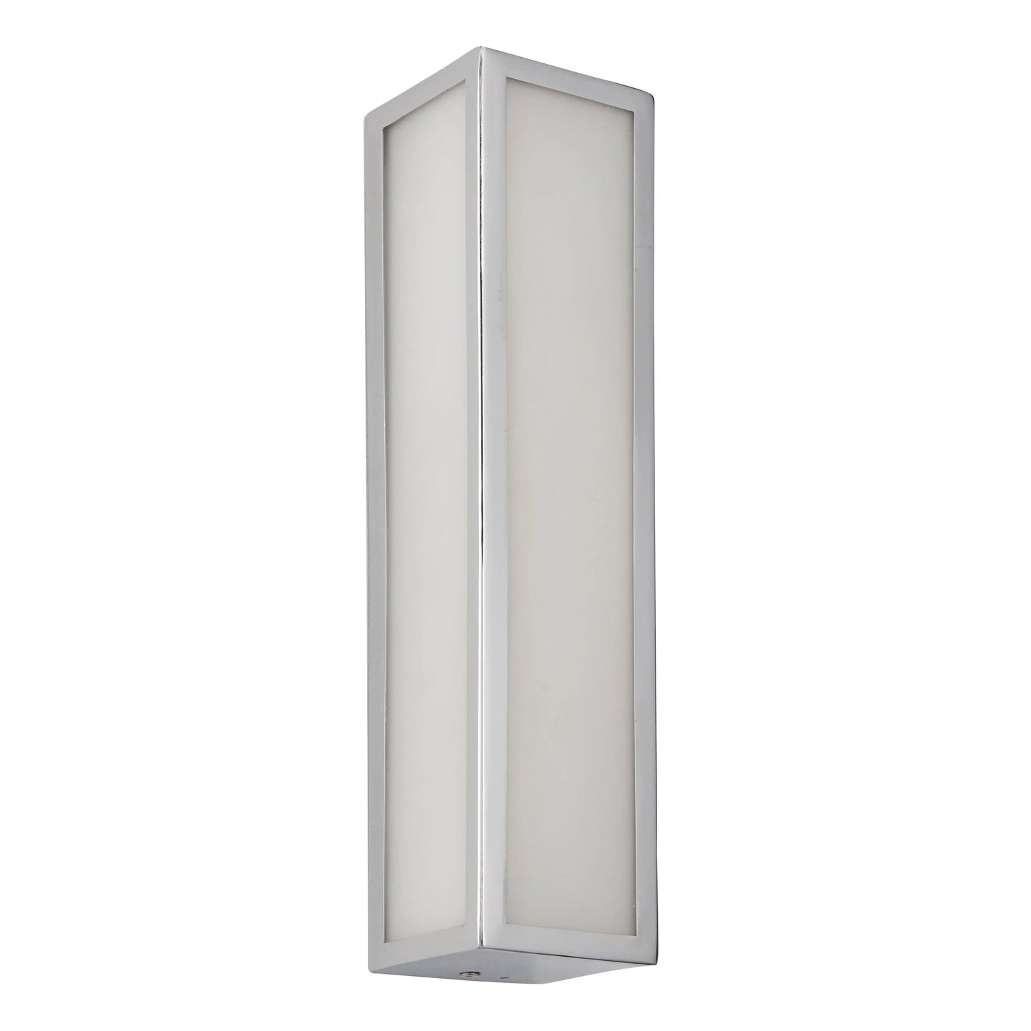 Simple yet stylish contemporary wall light with chrome plate finish and frosted glass diffuser. Dimmable and IP44 rated ideal to create a relaxing ambient light in any bathroom. Smaller size also available.