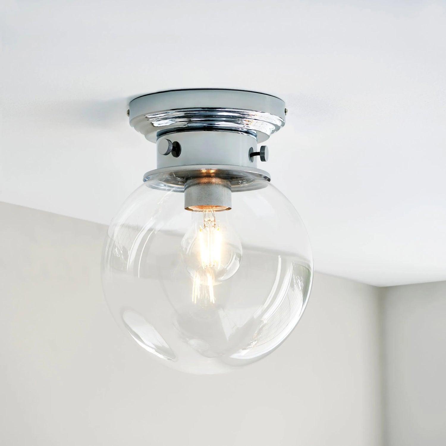 Design is in the detail - with intricate knurled edges and fresh chrome finish this stylish flush light is a timeless addition to the bathroom.