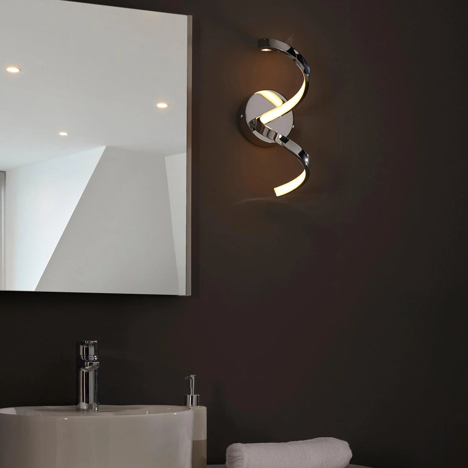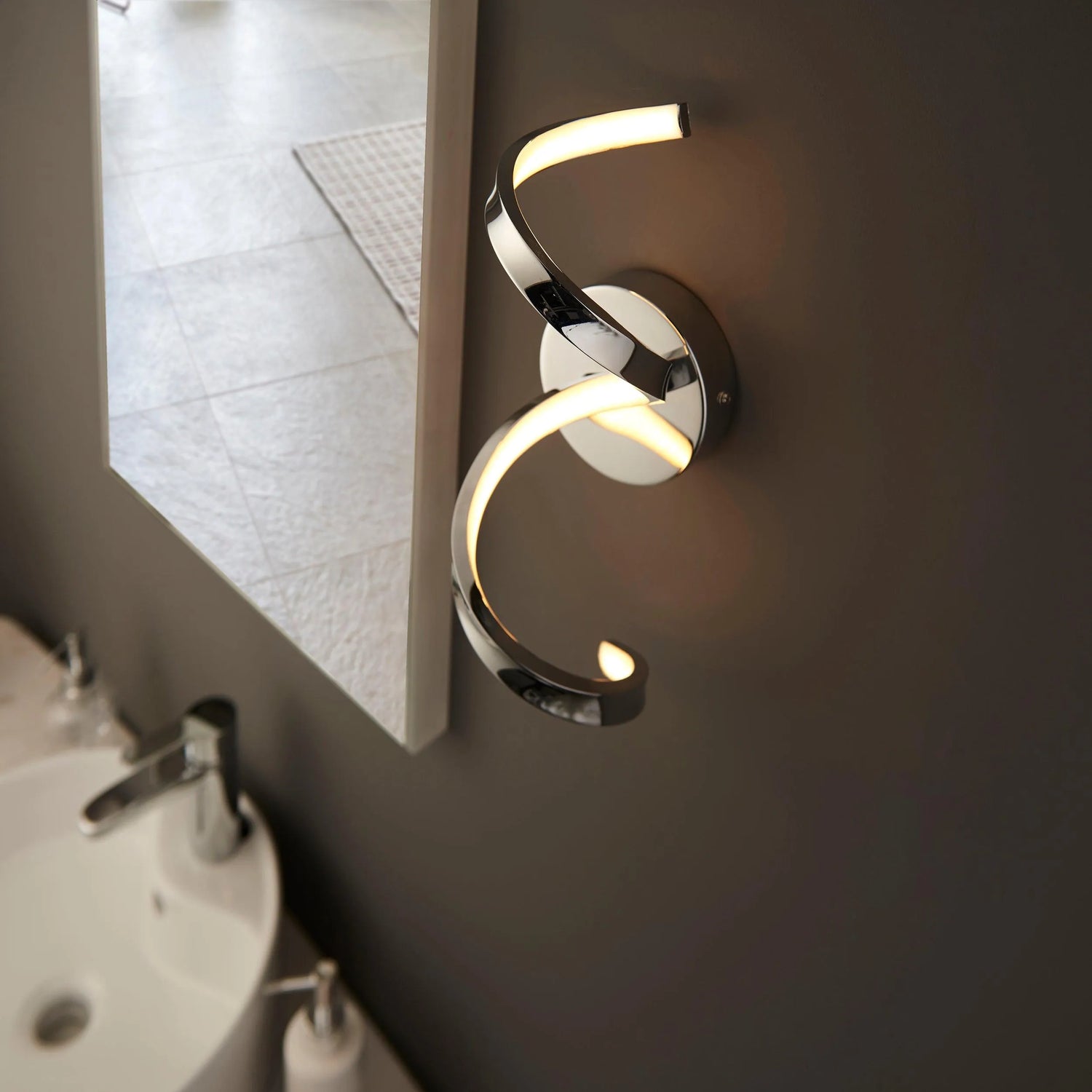 Add a modern twist to your bathroom with this wall light in chrome finish. IP44 rated safe to use in bathroom zone 2 this wall light provides a warm white ambient glow to create a relaxing environment.