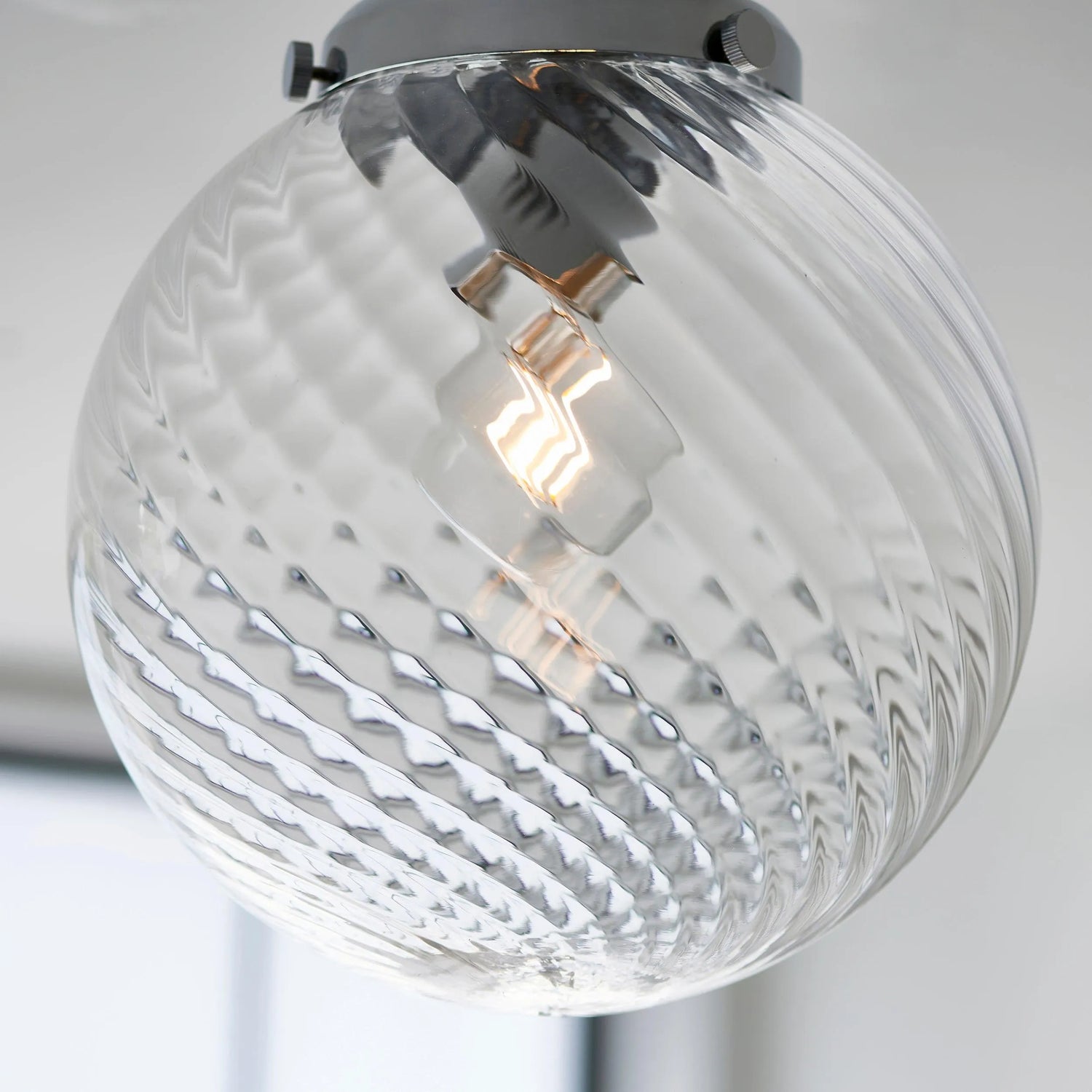 Smart and stylish wall light with clear spiral design glass shade. Dimmable and IP44 rated to allow you to create the perfect relaxing bathroom space.