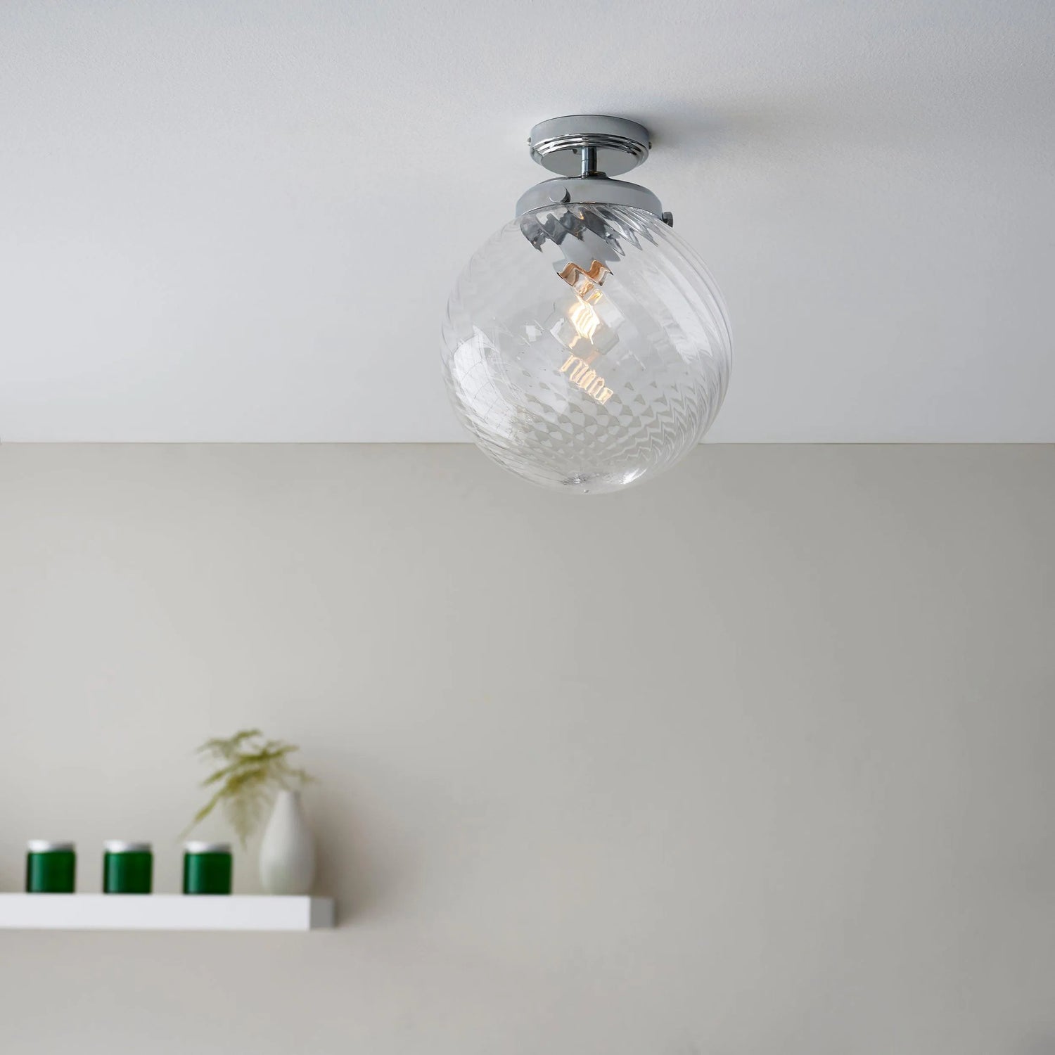 Endon Lighting 96488 Milston Bathroom Flush Light Chrome plate & clear spiral glass Dimmable