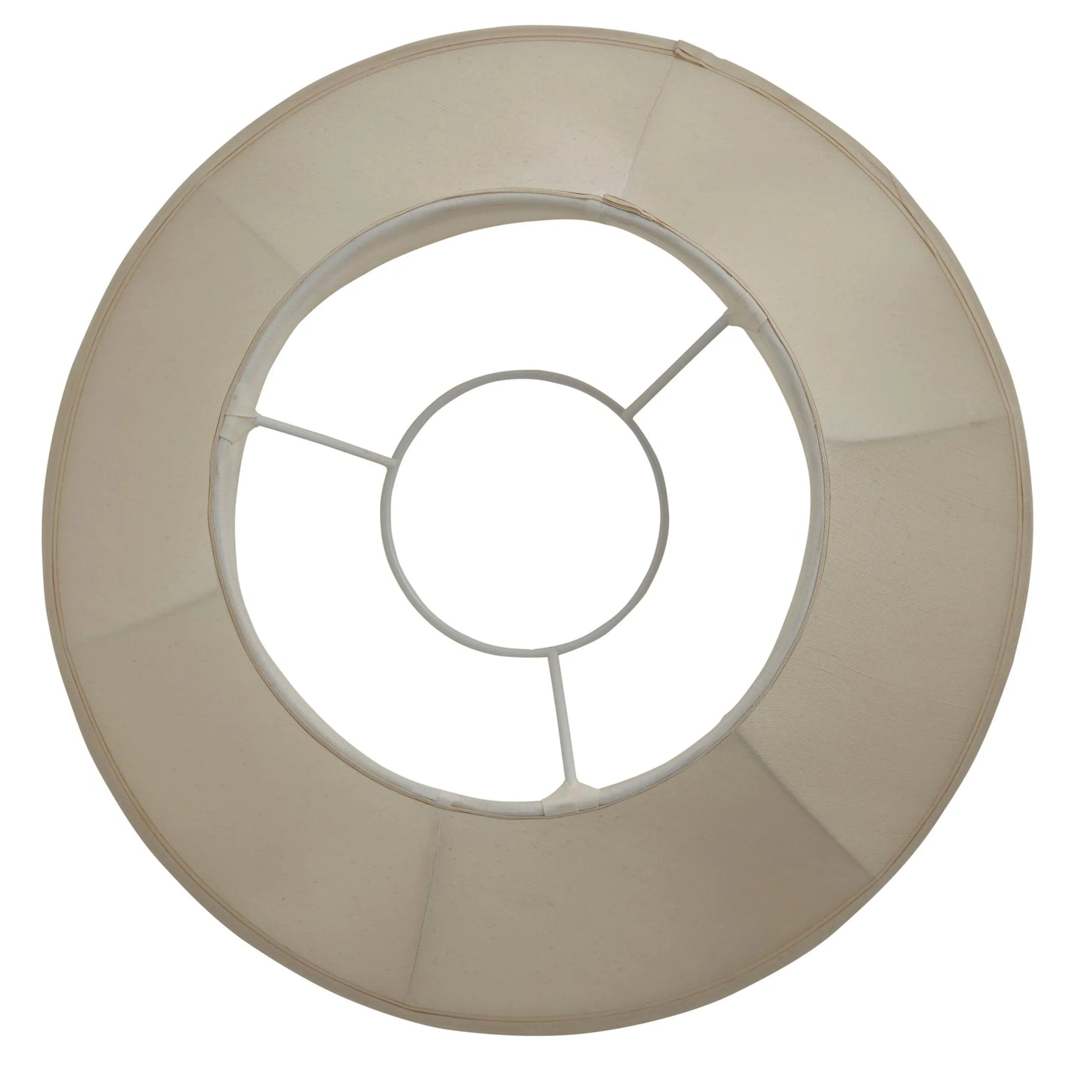 This 18 inch handmade cream lamp shade is shaped in a round bell design and has a double folded trim on the top and bottom. For use with a variety of lamp bases and available in a choice of sizes