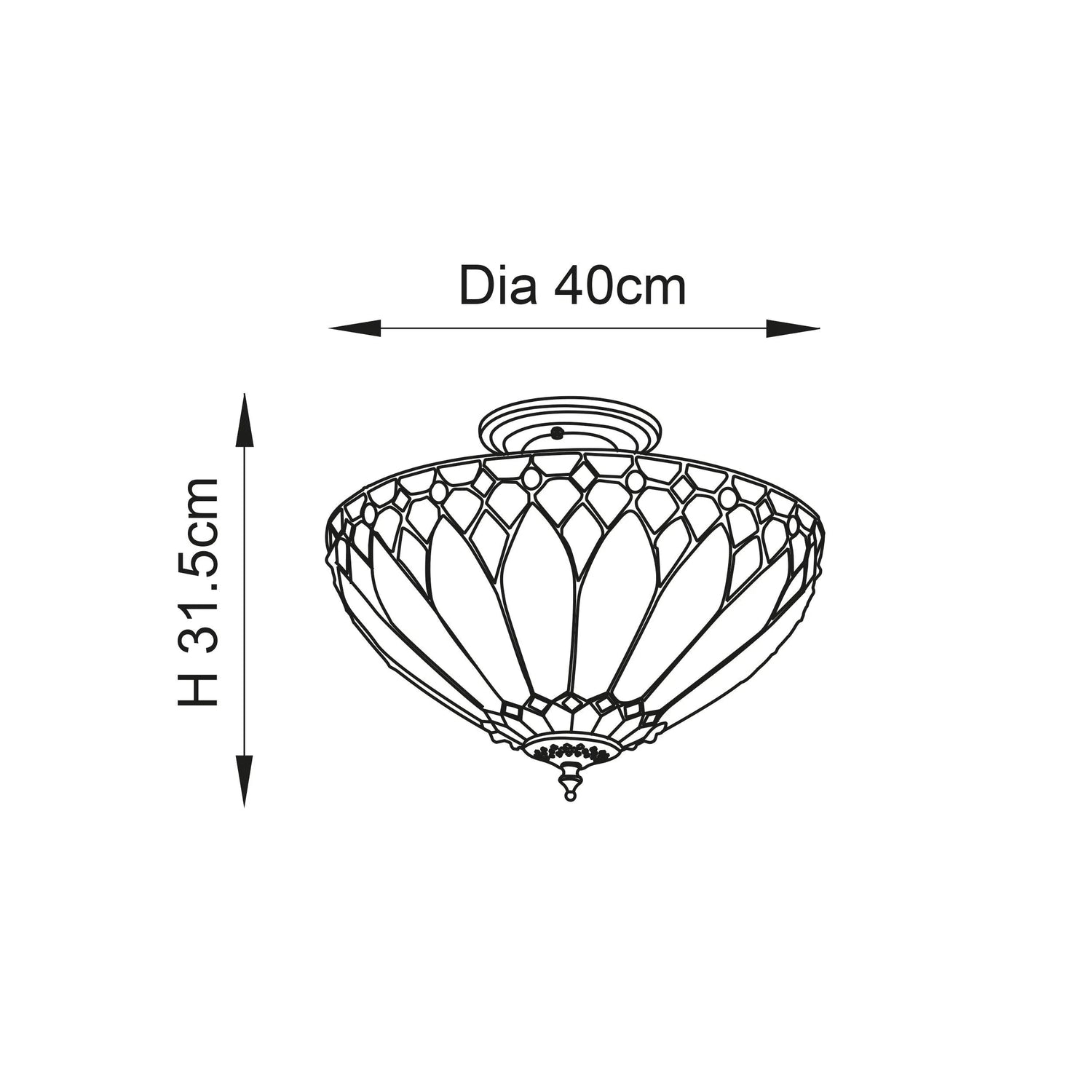 Endon Tiffany Lighting 63978 Indoor Semi flush Light Brooklyn Range 3 x 60W E27 GLS Dimmable