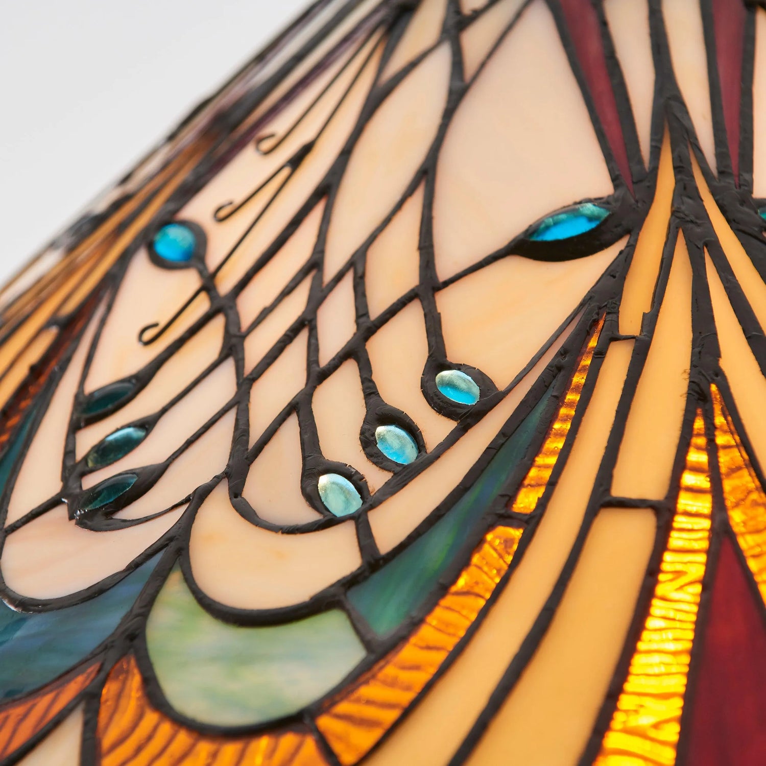 The Hector pendant is inspired by the work of Hector Guimard, the French Art Nouveau architect who famously designed many of the Paris Metro entrances. Tiffany style glass teamed with a bronze effect fitting. Dimmable and compatible with LED lamps