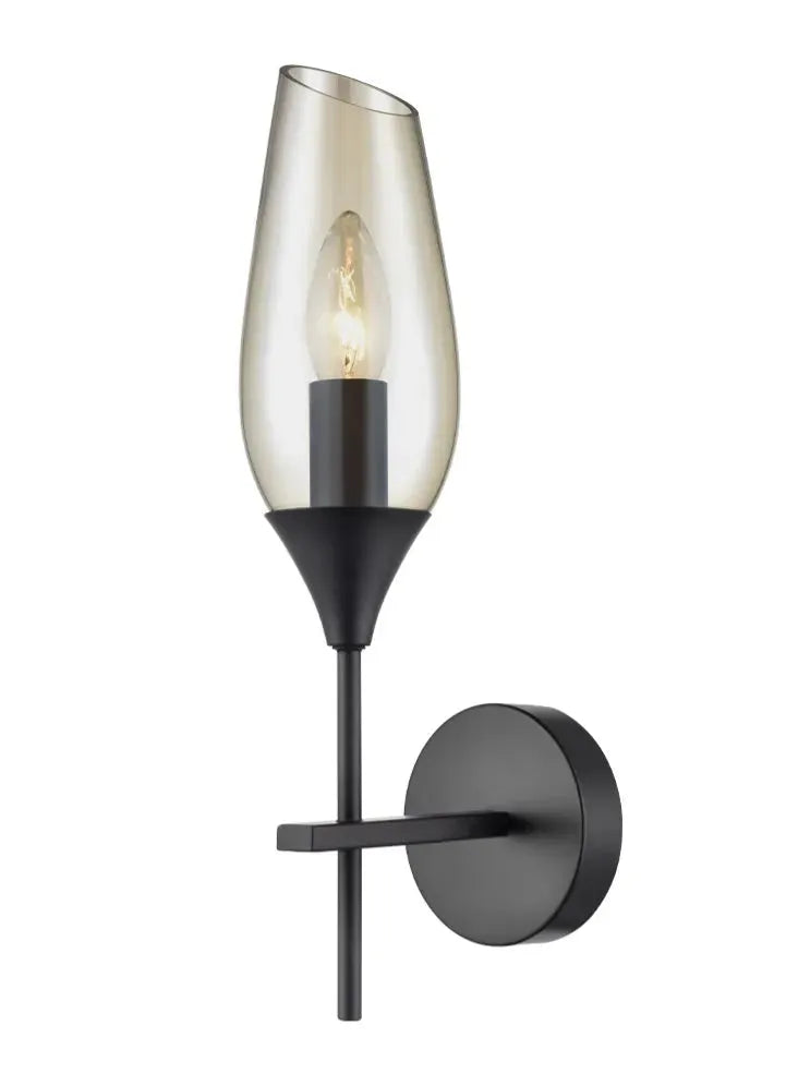 Pale amber angle cut glass wall bracket in matt black finish.