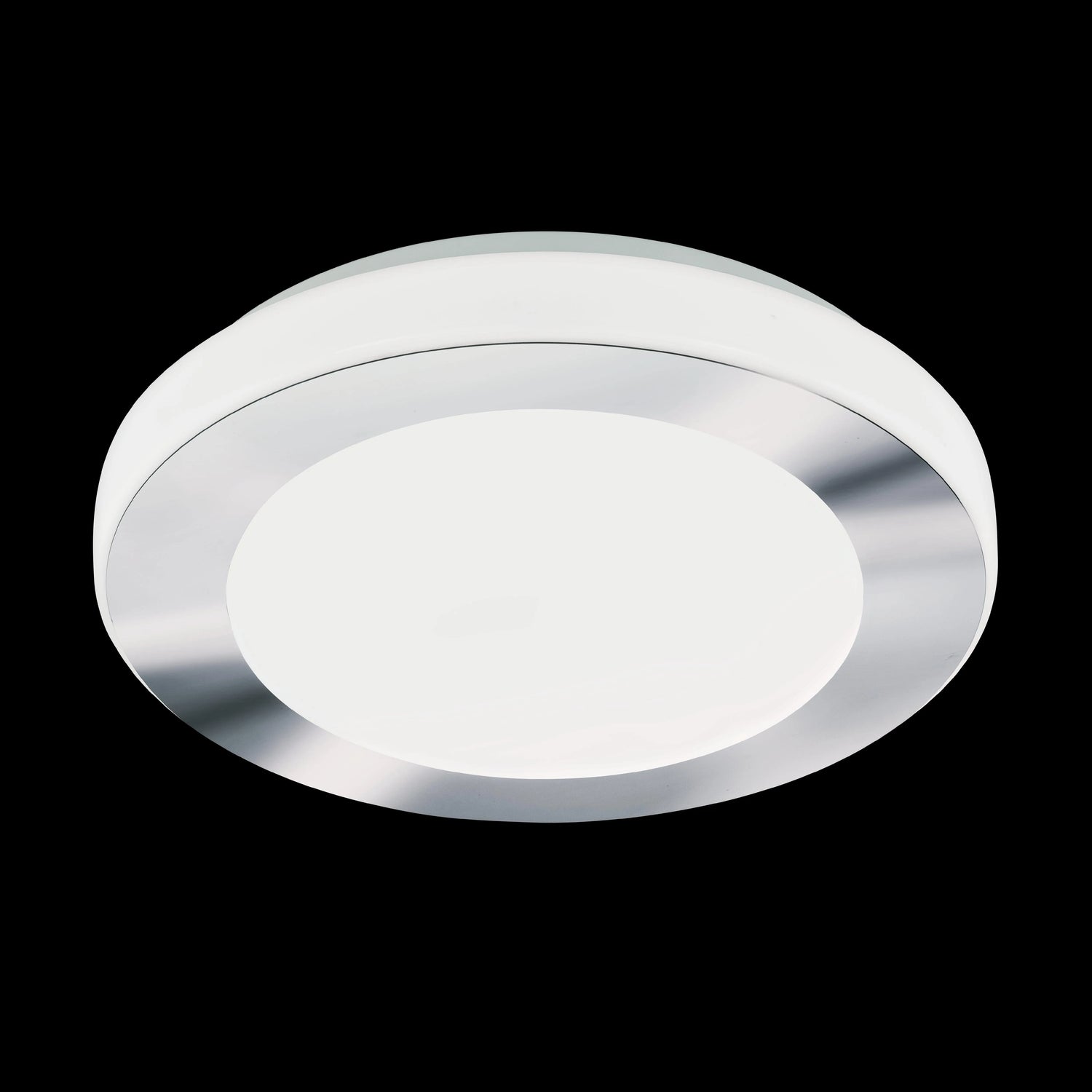 The LED CARPI ceiling light features a round light made from white plastic with a decorative chrome-coloured ring-shaped metal element. The integrated LEDs under the white plastic cover produce a uniform warm white light, and the product is suitable for use in the bathroom due to its IP44 protection against spray water. The ceiling light blends seamlessly with modern interiors and provides classic lighting in any space, whether in the bathroom, kitchen or hallway.