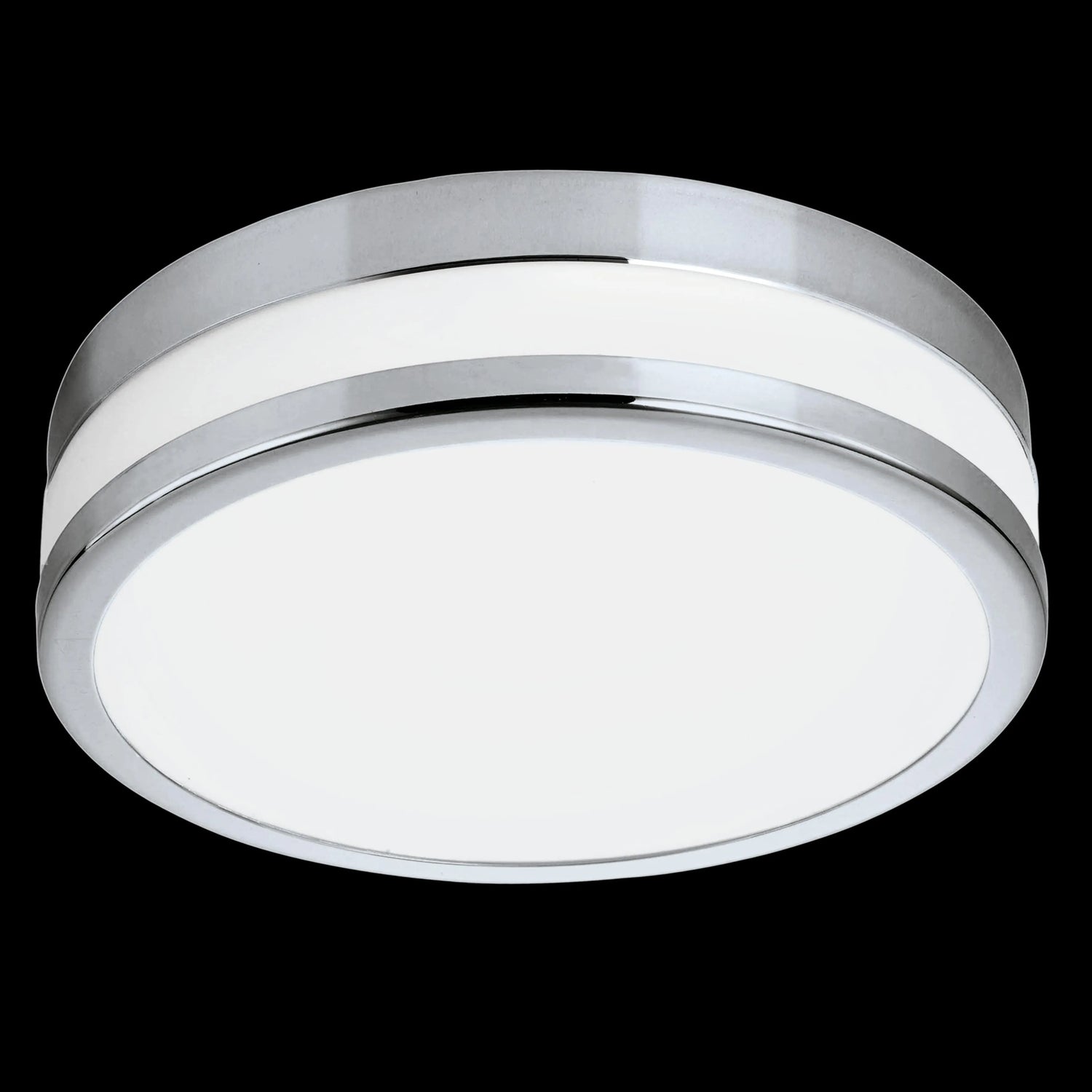The LED PALERMO LED ceiling light has a round satin glass cover. The design is complemented by two decorative chrome-coloured metal rings attached to the two light panels on the top and bottom of the light. The integrated LEDs produce a pleasant warm white light, and the product is suitable for use in the bathroom due to its IP44 protection against spray water. The ceiling light blends seamlessly with modern interiors and provides classic lighting in any space, whether in the bathroom, kitchen or hallway.