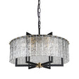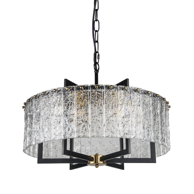 Elevate your space with this striking pendant light, featuring a sophisticated satin chrome finish and textured glass panels that beautifully diffuse light. Its geometric frame adds a touch of modern artistry, while the shimmering glass creates a warm, inviting glow. Perfect for dining rooms, living spaces, or entryways, this pendant blends timeless elegance with contemporary design.