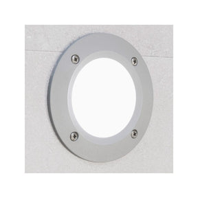 Round recessed wall fitting, with plain grey cover and opal diffuser made in shockproof resin material, UV rays stabilized, rust and corrosion-free. Supplied as standard with long-life powerful and efficient TÜV approved GX53 3W LED lamp.