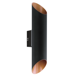 The AGOLADA exterior LED wall light has a tube-shaped, zinc-coated, black metal body with slanted ends. The copper-coloured inner surface of the wall light adds a superb finish. The integrated LEDs produce a pleasant, warm white light that provides indirect lighting on the wall due to the up and down design. The light is suitable for outdoor use due to its IP44 protection against spray water. The contemporary design of this product will blend into any modern outdoor area, whether on the wall, the entrance area or the terrace.